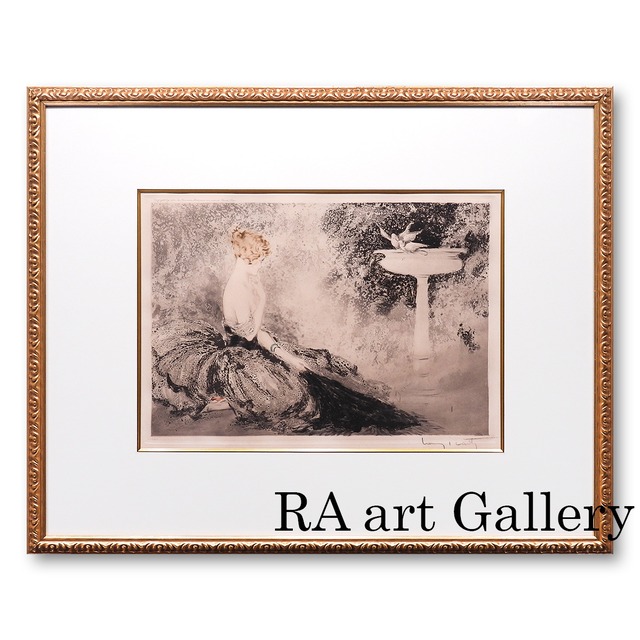 ルイ・イカール 甘い抱擁 人物画 女性像 美人 鳥 アールデコ 作家直筆サイン アート 1月11日まで展示中 版画 絵画 真作保証 値下げ交渉可能
