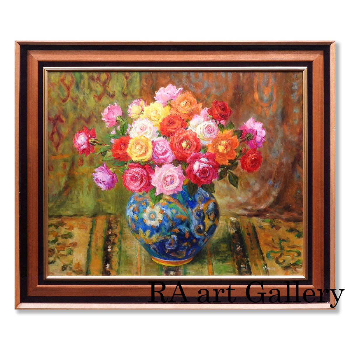 伊藤晴子 マジョリカ壷のバラ 油彩30号 静物画 花 薔薇 内閣総理大臣賞 白日会常任委員会 父:伊藤清永 版画 絵画 真作保証 値下げ交渉可能
