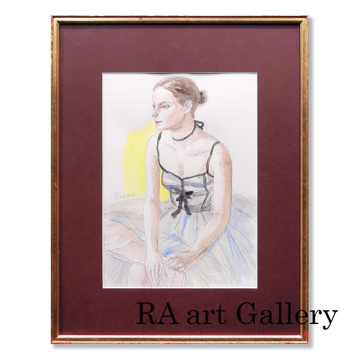寺島龍一の《バレリーナ》は、水彩のやわらかな筆致で描かれた、静かな緊張と内面の集中を感じさせる作品。