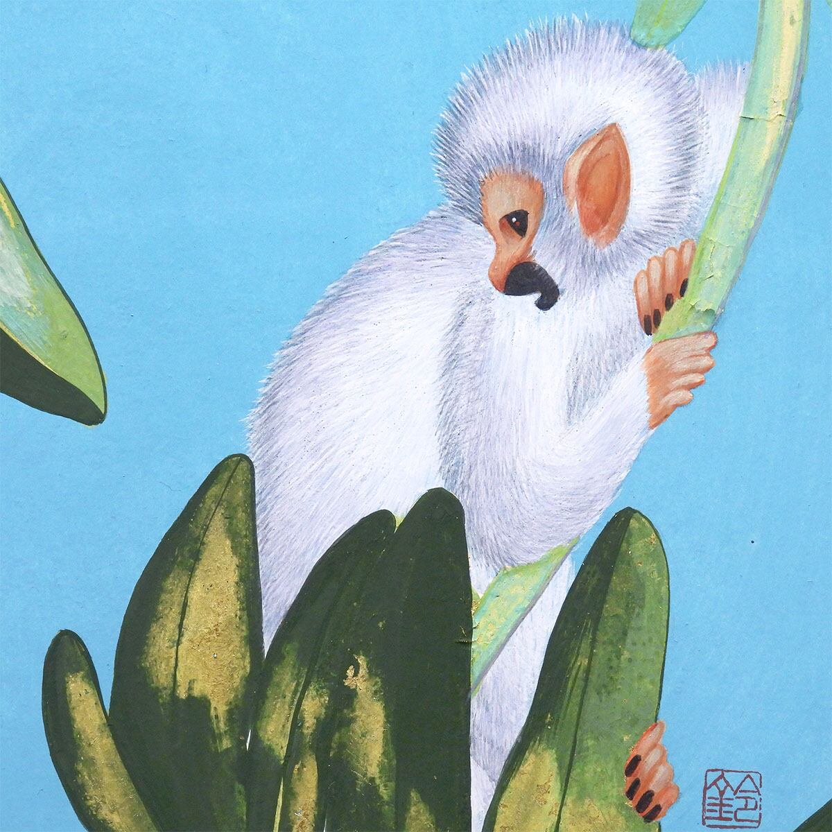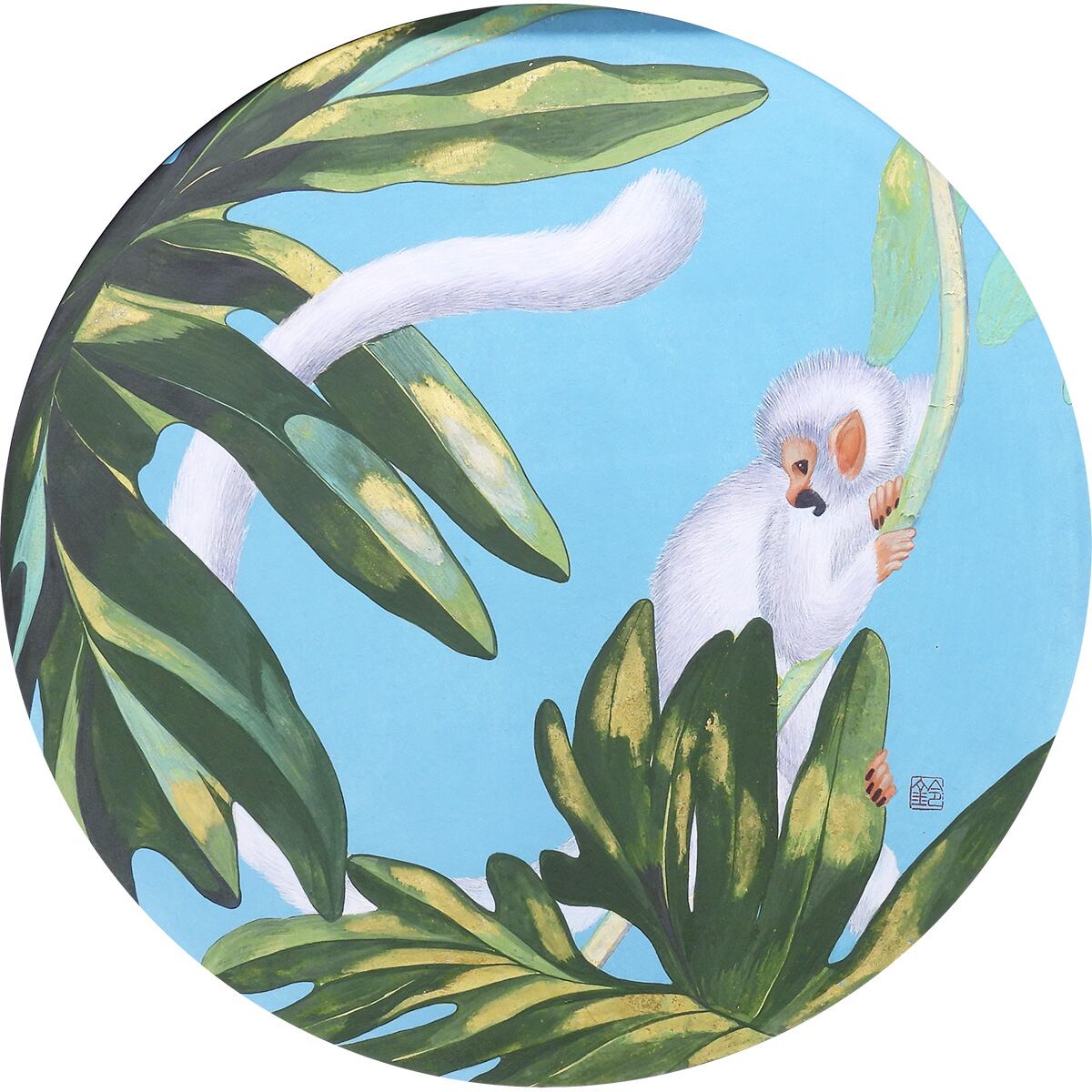 ■作品解説:本作『白い猿』は、動植物と空想上の生き物を通して「生命の躍動、そして祈り」を描いており、特筆すべきは、白い猿という「通常とは異なった動物」を通じて、モチーフの猿を象徴的に捉えている作品。