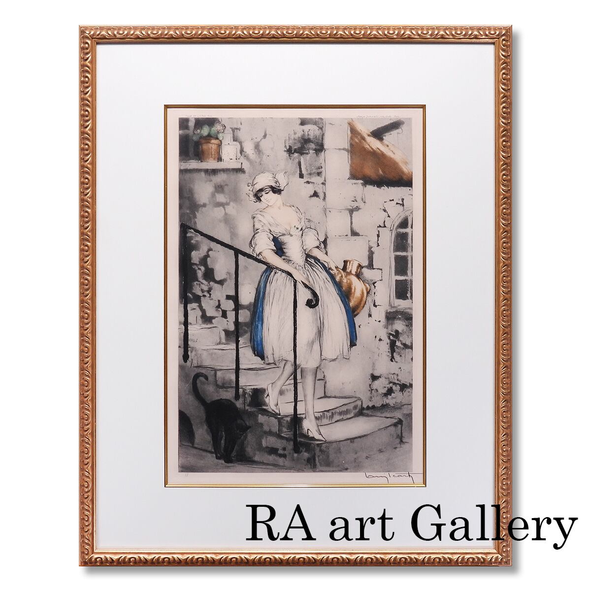 ルイ・イカール ミルクメイド 人物画 女性像 黒猫 美人画 動物画 階段 1月11日まで展示 作家直筆サイン 版画 絵画 真作保証 値下げ交渉可能