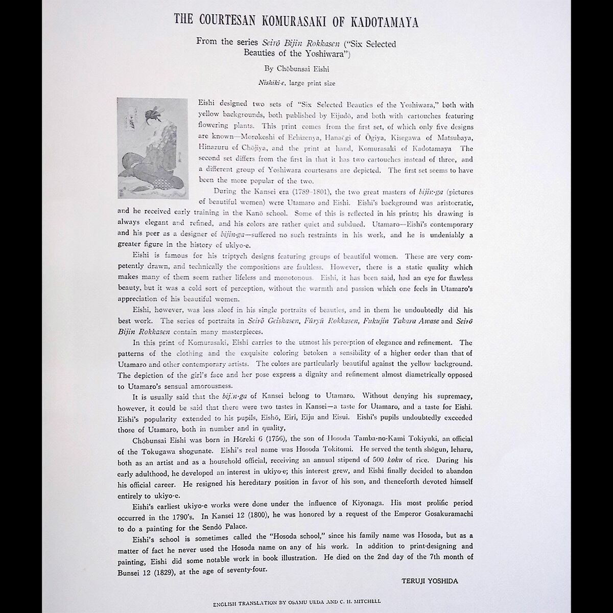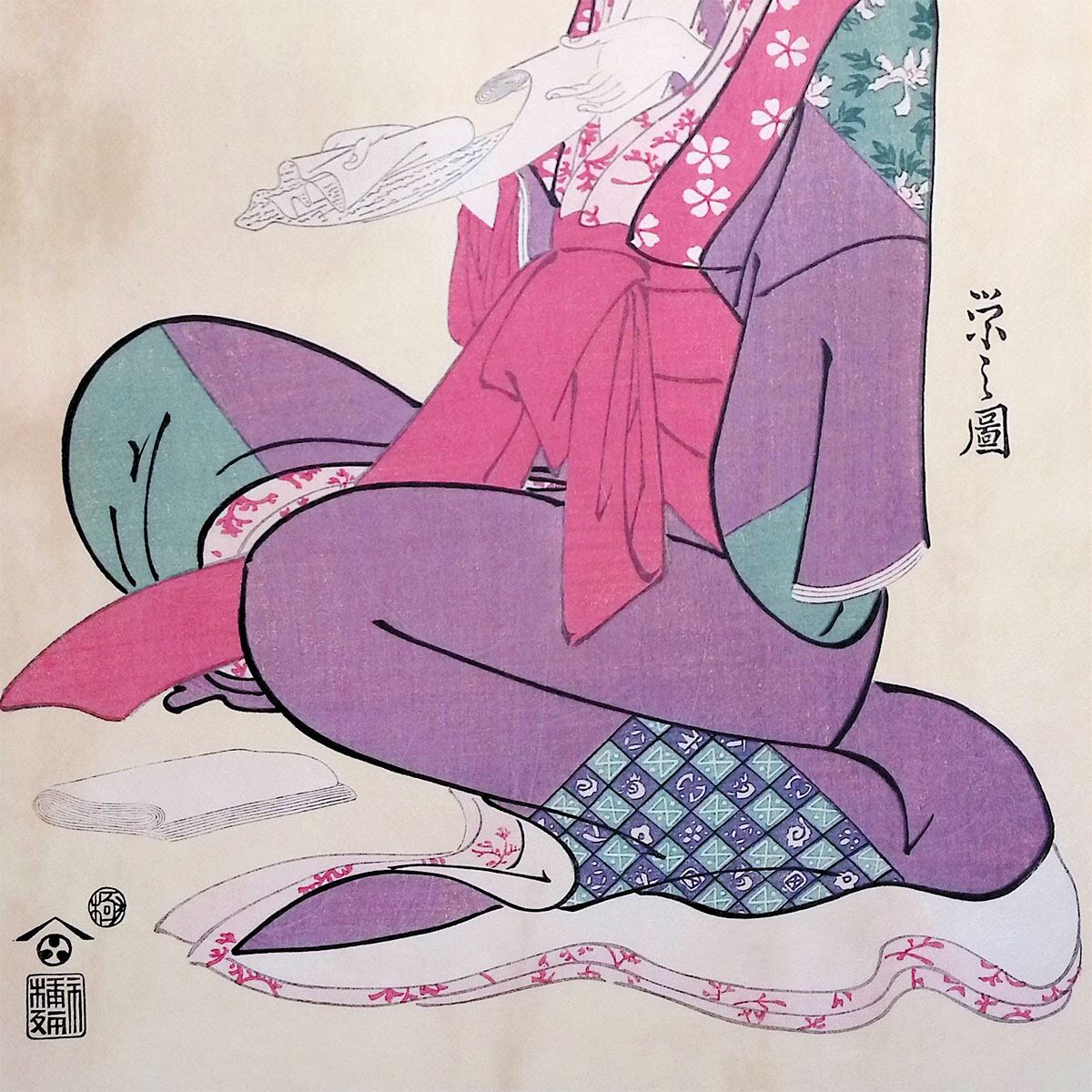 寛政期に独自の清楚で典麗な様式を確立し、歌麿と並ぶ存在として語られる。