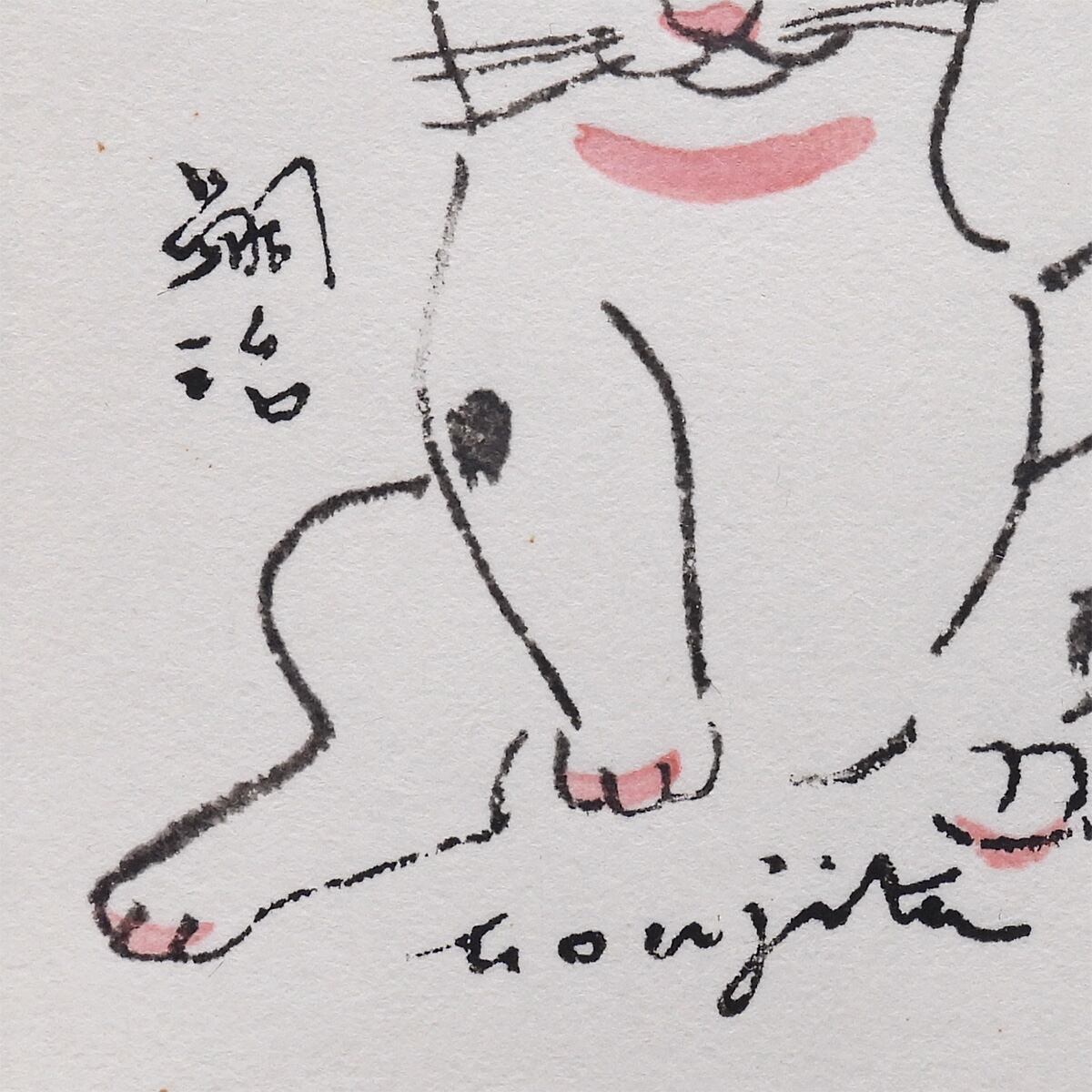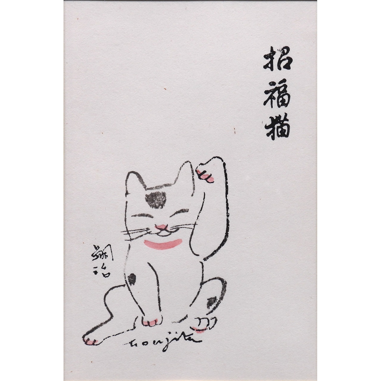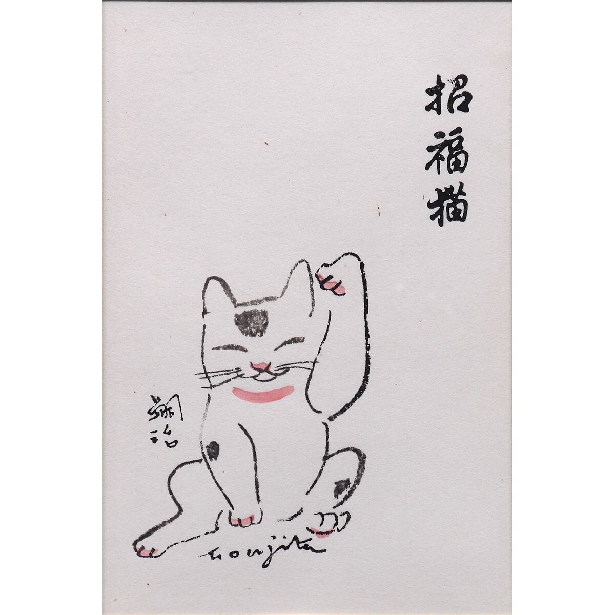 藤田嗣治 招福猫 動物画 木版画 藤田本人による彫りと刷り 招き猫 縁起物 プレゼント・お祝いに 額装 版画 絵画 真作保証 値下げ交渉可能