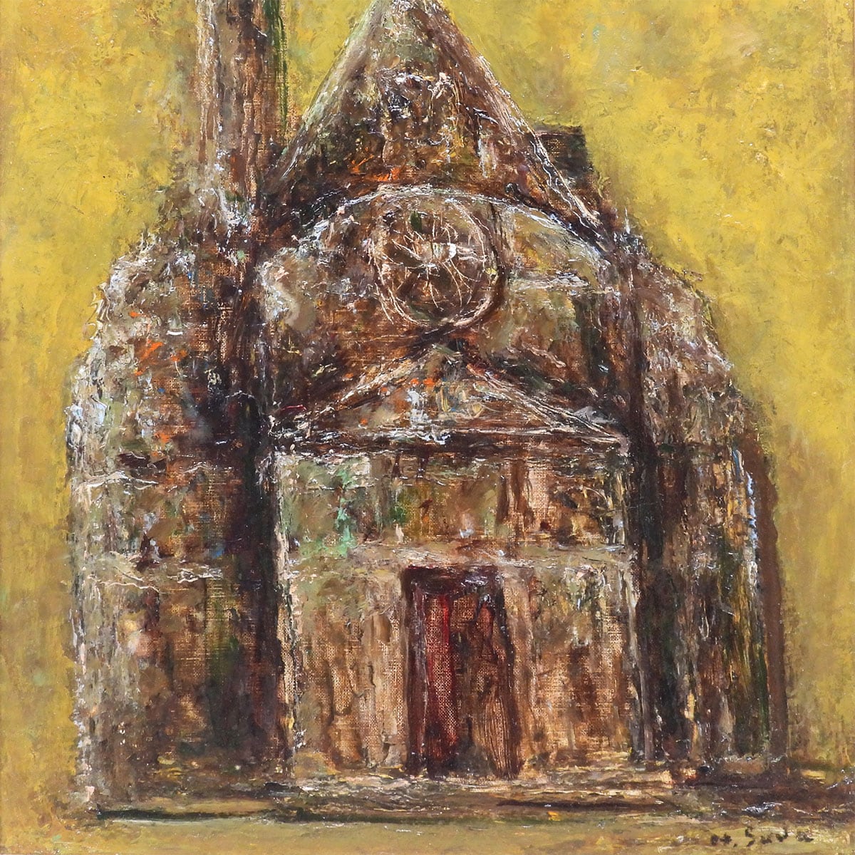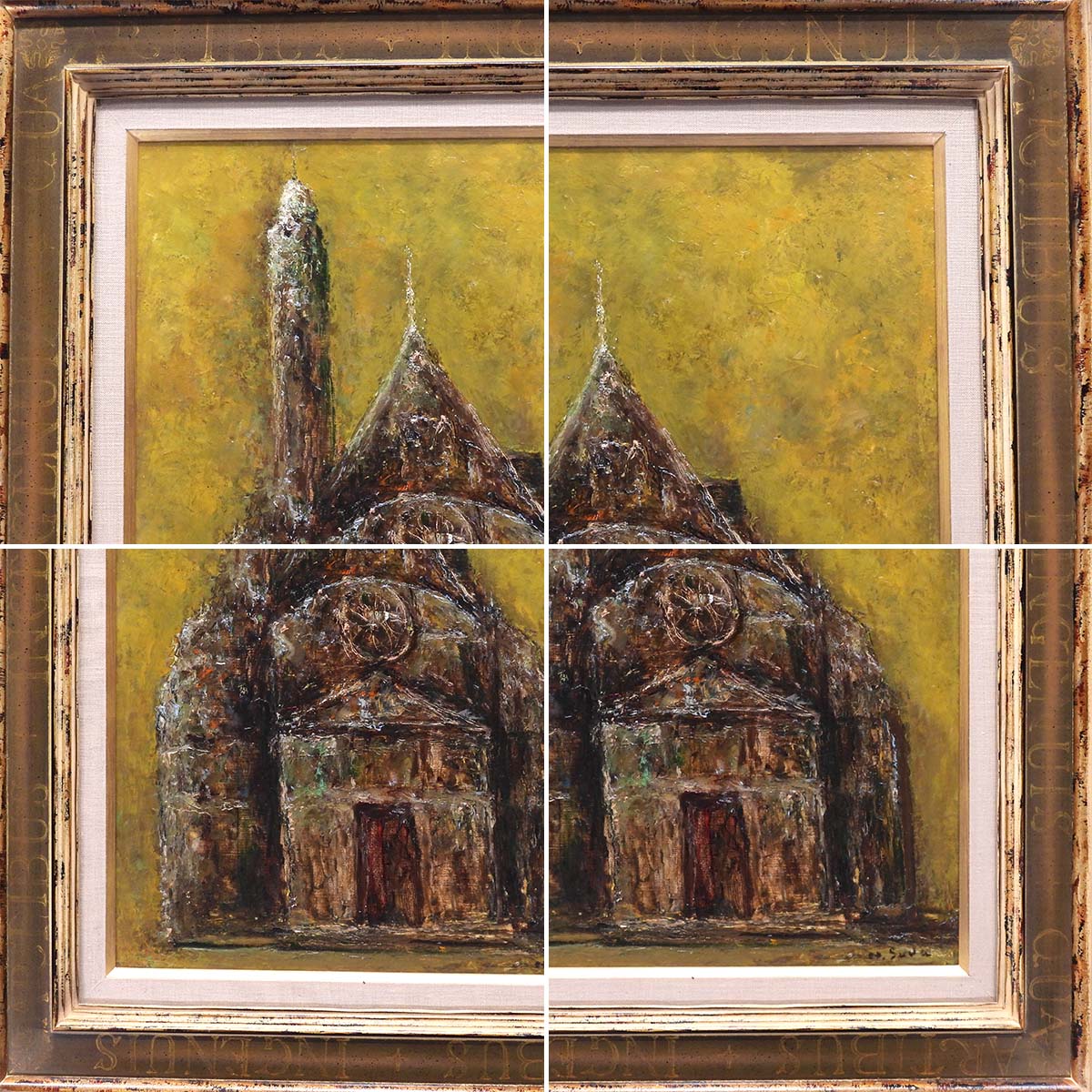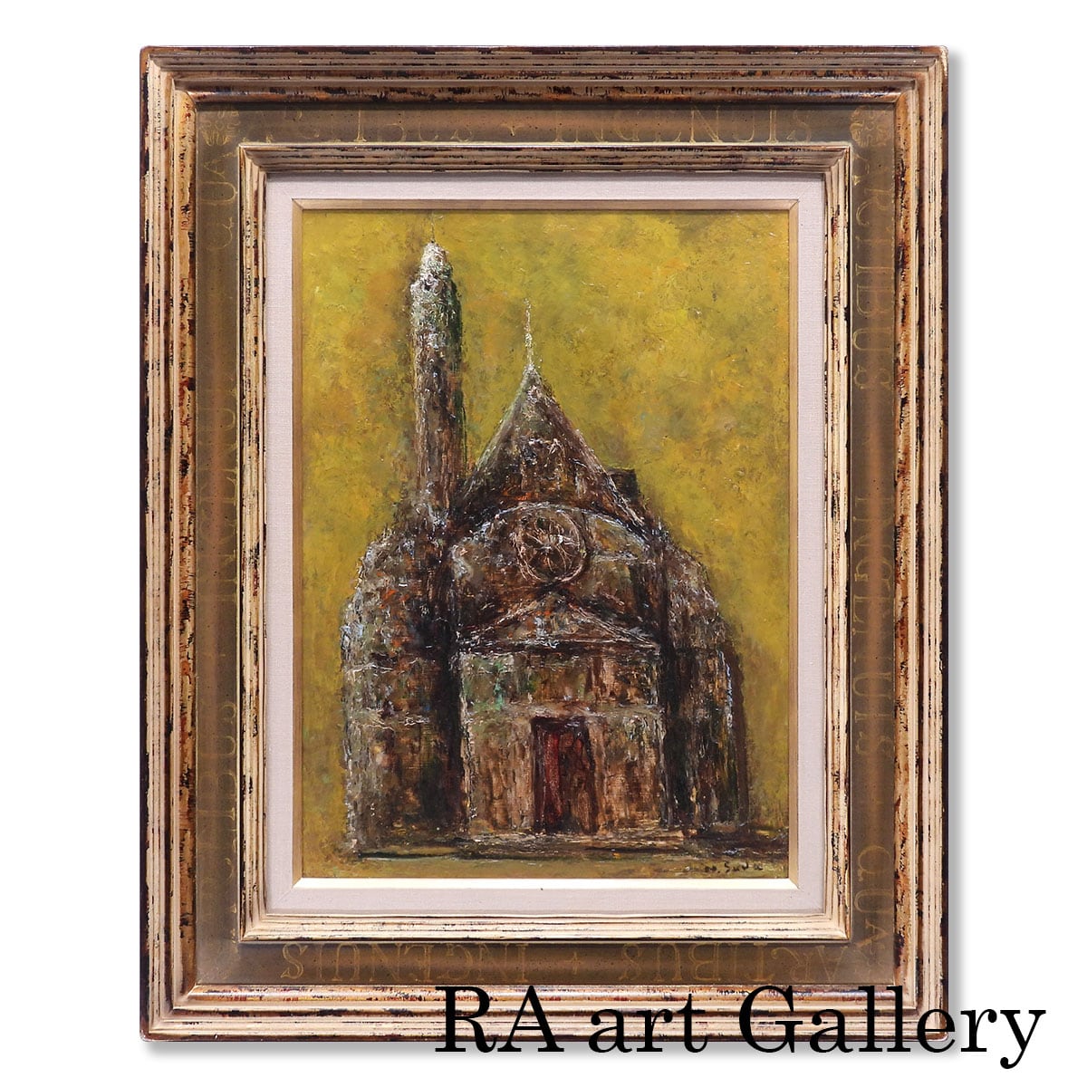 須田寿 サン・テチエンヌ デュ モン 佛 油彩8号 風景画 共シール 教会 建物 フランス アート 額装 原画 油絵 絵画 真作保証 値下げ交渉可能