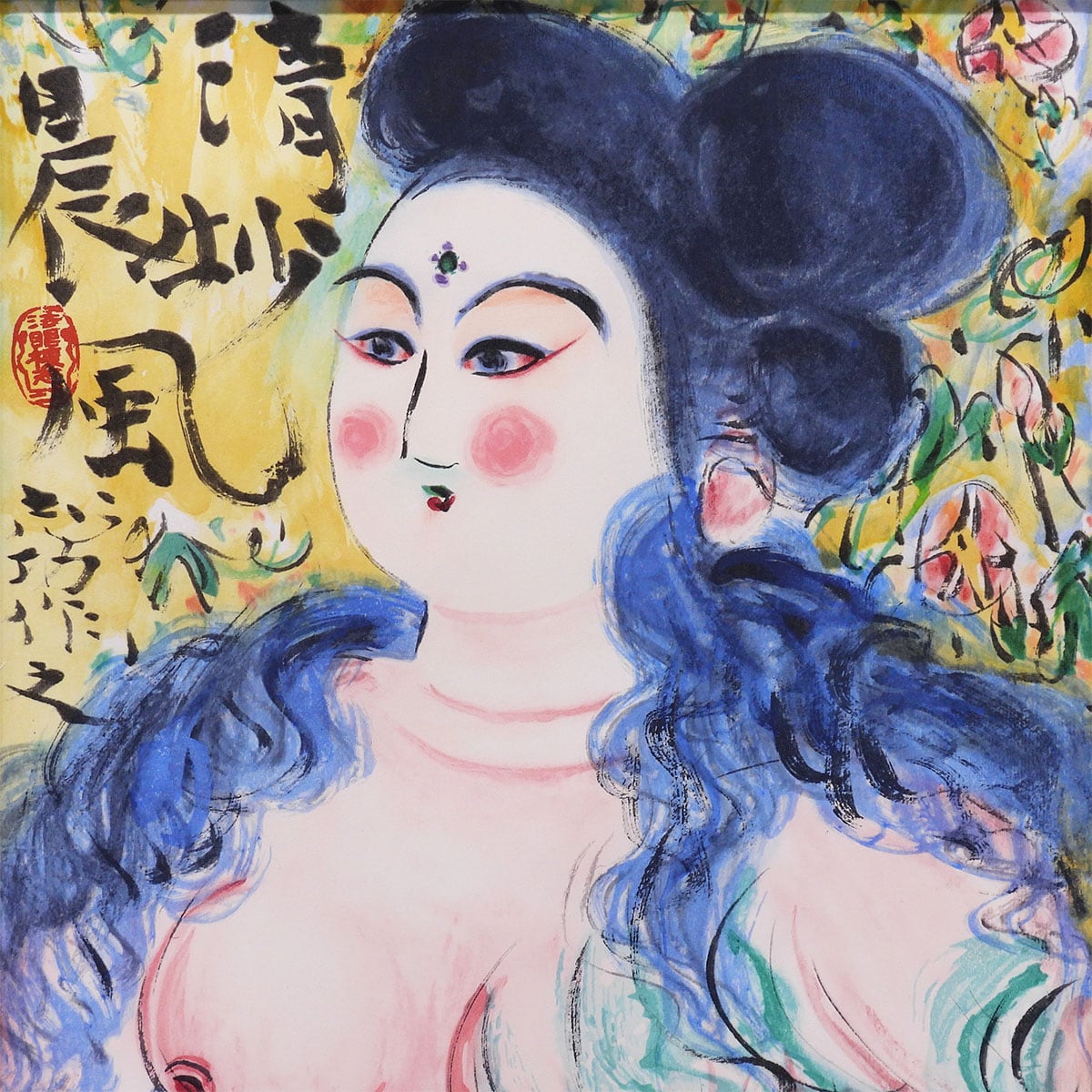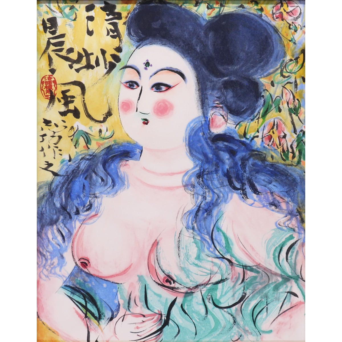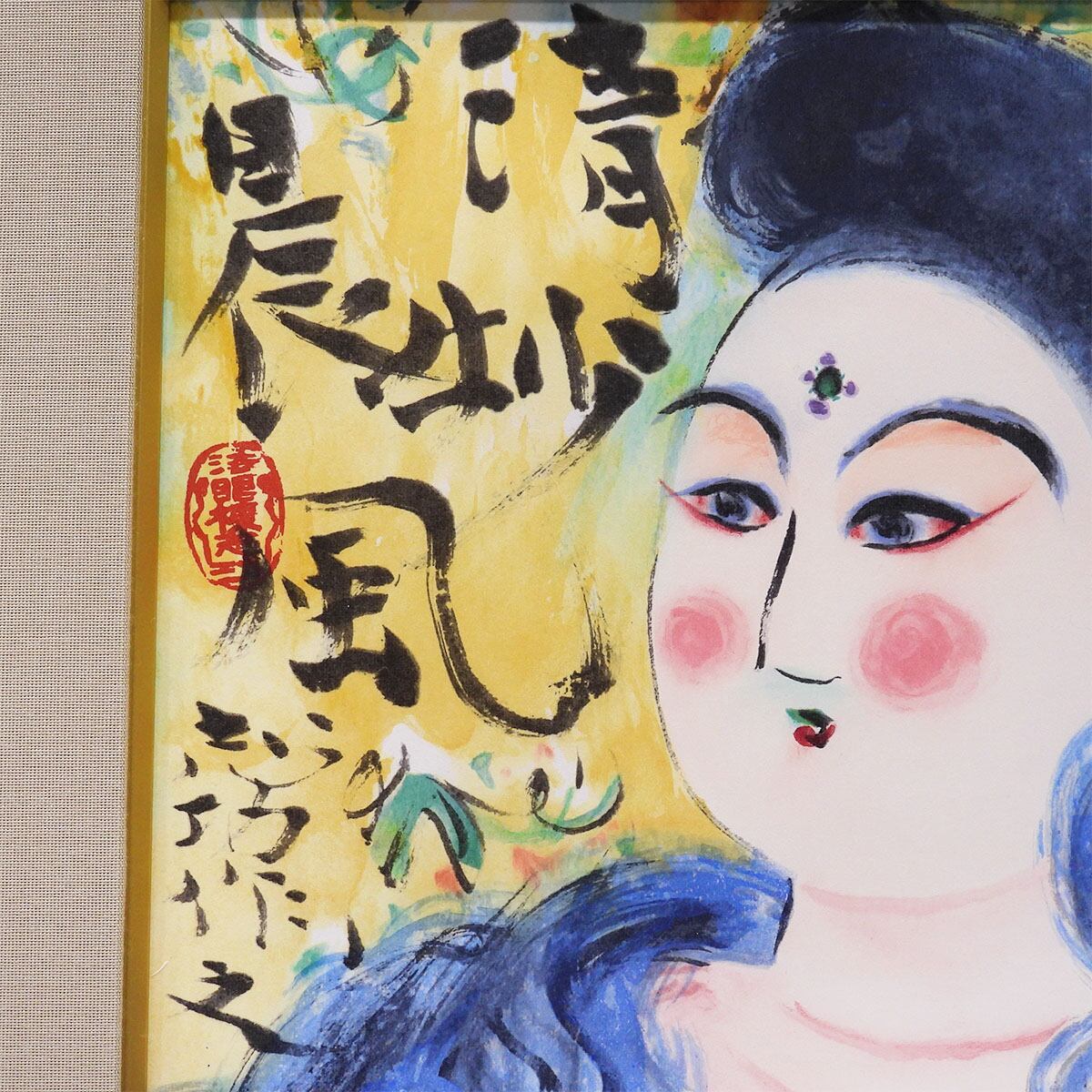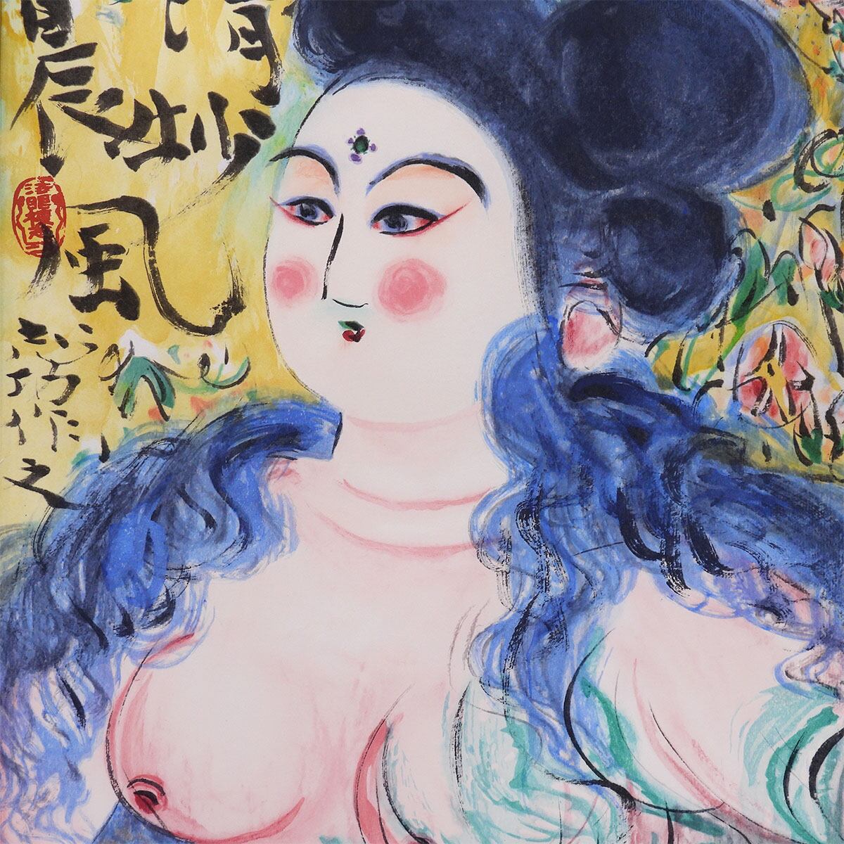 棟方志功 清妙妃図 人物画 証明書付 木版画 リトグラフ 併用 女性像 代表作 板画 倭絵 東急百貨店企画 版画 絵画 真作保証 値下げ交渉可能