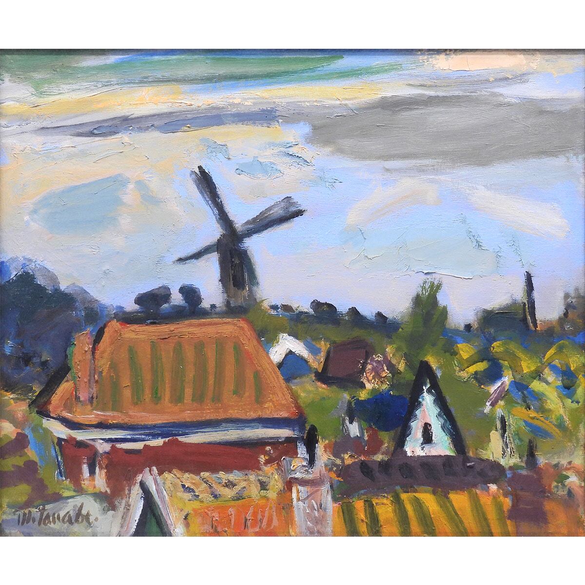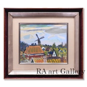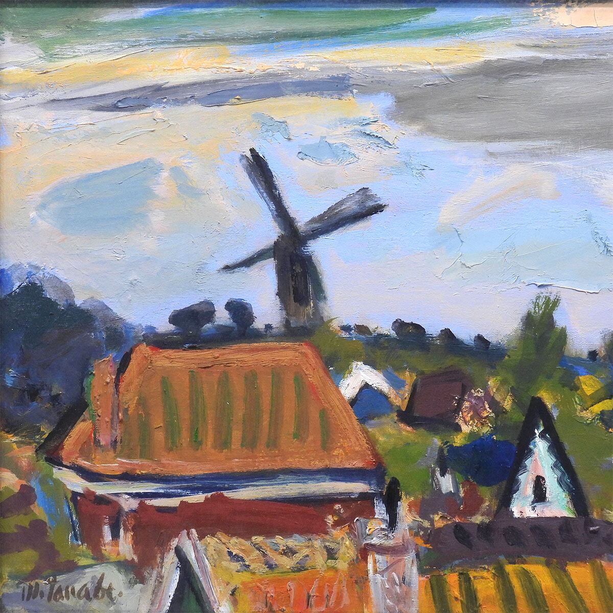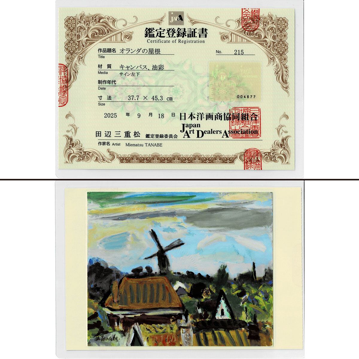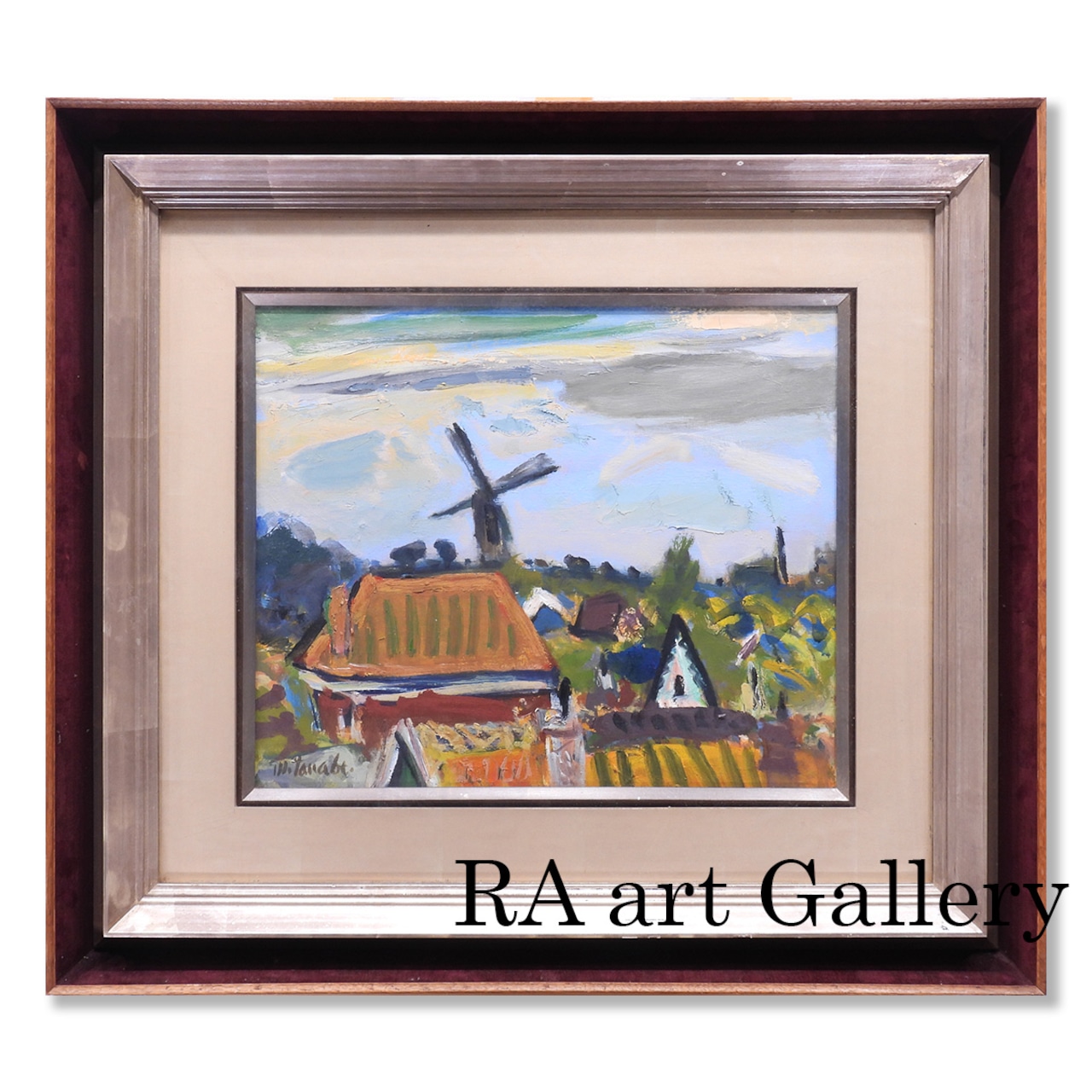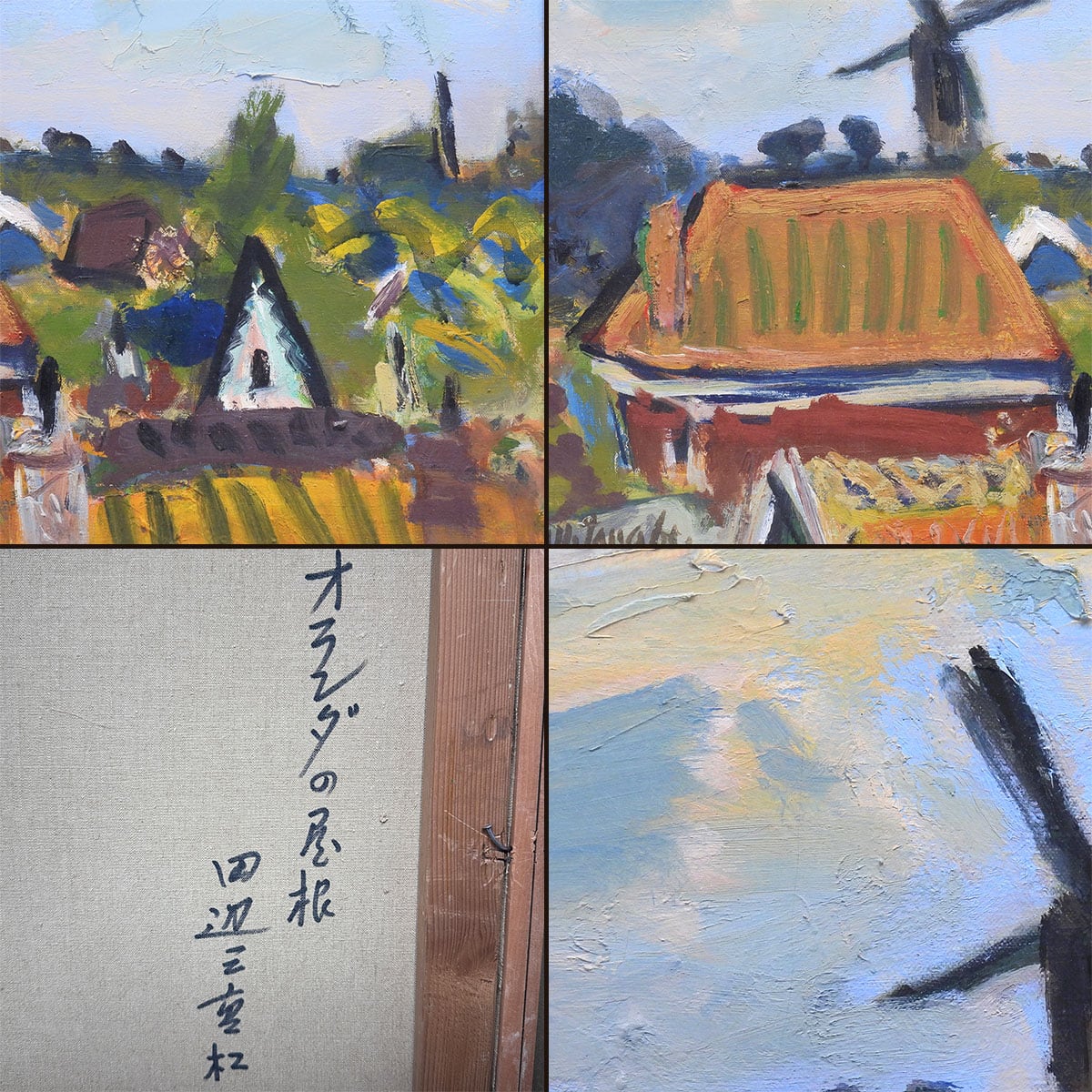 田辺三重松 オランダの屋根 油彩8号 風景画 鑑定書付 風車 村 町 街並み アート インテリア 北欧 原画 油絵 絵画 真作保証 値下げ交渉可能